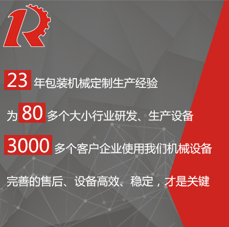 廣州市睿佳機(jī)械設(shè)備有限公司是國(guó)內(nèi)專業(yè)從事自動(dòng)化包裝機(jī)械產(chǎn)品,集研發(fā)、生產(chǎn)、銷售、服務(wù)于一體的制造公司,已通過(guò)ISO9001:2008質(zhì)量體系認(rèn)證,部分系列產(chǎn)品已通過(guò)歐盟CE認(rèn)證。 經(jīng)過(guò)多年的發(fā)展,公司專業(yè)生產(chǎn):封尾機(jī),灌裝機(jī),旋蓋機(jī),貼標(biāo)機(jī),包裝機(jī),輸送機(jī),噴碼機(jī),灌裝生產(chǎn)線等機(jī)械設(shè)備。企業(yè)以開(kāi)發(fā)生產(chǎn)包裝機(jī)械和訂做特殊包裝機(jī)械為主,所生產(chǎn)的包裝機(jī)械在同行和客戶中都得到一致的贊賞,以高技術(shù)和穩(wěn)定的質(zhì)量遠(yuǎn)銷東南亞和歐美。在國(guó)內(nèi),也成為多家知名藥廠、食品廠、化妝品廠指定使用產(chǎn)品。 睿佳機(jī)械:“想客戶之所想,急客戶之所急”既是睿佳對(duì)廣大客戶的承諾也是睿佳的宗旨,睿佳將與時(shí)代同步、銳意進(jìn)取,以更優(yōu)質(zhì)的服務(wù)回報(bào)廣大客戶對(duì)睿佳的信賴和支持。